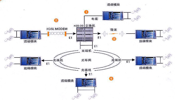 體系特點(diǎn):利用廉價(jià)的HDSL設(shè)備,可以直接使用銅線長(zhǎng)距離傳輸E1信號(hào),可以實(shí)現(xiàn)1:64倍的擴(kuò)容、線纜改造、提高線路利用率,并能夠簡(jiǎn)化維護(hù)、方便管理。