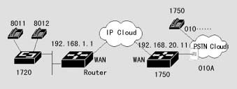 1720也可以通過器語音端口連接到PSTN,通過二次撥號(hào),使得兩地的PSTN用戶可以通過IP網(wǎng)絡(luò)互相通話,而話費(fèi)只是市話的費(fèi)用。
