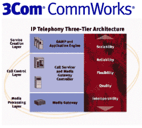 ---- CommWorks是3Com公司整個統(tǒng)一網(wǎng)絡(luò)業(yè)務(wù)策略中的一項重要的戰(zhàn)略性計劃。它是一個將服務(wù)提供商們現(xiàn)有的網(wǎng)絡(luò)基礎(chǔ)設(shè)施向基于IP的統(tǒng)一網(wǎng)絡(luò)和增強型業(yè)務(wù)進行升級的三層、三階段戰(zhàn)略。CommWorks囊括了3Com公司專為服務(wù)提供商客戶而設(shè)計的品種齊全的IP電話產(chǎn)品線。3Com公司現(xiàn)有的以及將來將要推出的所有面向全球運營商市場的產(chǎn)品都將采用CommWorks作為品牌。