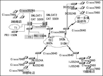 5500骨干網(wǎng)交換機(jī),并正在對其進(jìn)行升級,以支持千兆以太骨干網(wǎng)。它還保留了現(xiàn)有的思科3600系列路由器,為各個(gè)分支機(jī)構(gòu)間的WAN和互聯(lián)網(wǎng)提供連接,用特有的WAN接口卡(WIC)支持他們的語音業(yè)務(wù)。因?yàn)槟苤С?30多部思科IP