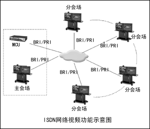 ISDN網(wǎng)絡(luò)連接:借助思科IP視頻會(huì)議系統(tǒng),目前廣泛使用的ISDN通信網(wǎng)可以與視頻終端ISDN PRI或BRI接口相連,通過撥號(hào)與任何一個(gè)會(huì)場進(jìn)行隨時(shí)隨地的連接。另外,采用ISDN線路還可以起到網(wǎng)絡(luò)備份和延伸的作用。ISDN線路的建設(shè)非常方便,各分會(huì)場可以從電信部門申請(qǐng)ISDN線路,并在1至2周內(nèi)完成線路到位。