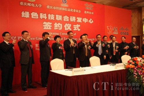 CTI論壇(ctiforum)2月3日消息(記者 潘婷):2月3日上午,思科公司與重慶郵電大學正式簽訂合作協(xié)議,共建“重慶郵電大學-思科綠色科技聯(lián)合研究實驗室”!熬G色科技聯(lián)合研究實驗室”的成立是思科履行其致力于推動中國創(chuàng)新和可持續(xù)發(fā)展承諾的重要舉措。此次合作中雙方將共同推動下一代互聯(lián)網(wǎng)、傳感器網(wǎng)絡以及綠色科技等領域的研發(fā),推進應用推廣和產(chǎn)業(yè)化發(fā)展,實現(xiàn)產(chǎn)學研一體化,幫助和支持重慶本土企業(yè)提高綠色科技創(chuàng)新的素質和能力,進而支持中國發(fā)展綠色經(jīng)濟、節(jié)能減排的長期戰(zhàn)略。