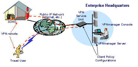 在本方案中,VPN設(shè)備選用Avaya公司的VPN系列網(wǎng)關(guān)產(chǎn)品,網(wǎng)絡(luò)中心使用VSU-2000實(shí)現(xiàn)高速的數(shù)據(jù)交換以滿(mǎn)足需要。VPN設(shè)備和移動(dòng)用戶(hù)的管理采用VPNManager和VPNRemote軟件來(lái)完成。VPNManager能夠?qū)崿F(xiàn)對(duì)整個(gè)VPN網(wǎng)絡(luò)進(jìn)行管理,滿(mǎn)足用戶(hù)認(rèn)證、加密策略的制定和修改等等重要工作。VPNRemote安裝在移動(dòng)用戶(hù)的計(jì)算機(jī)上,為用戶(hù)提供在任何地點(diǎn)只需接入任意一個(gè)ISP即可建立VPN連接的功能,充分滿(mǎn)足移動(dòng)用戶(hù)的的需要。企業(yè)網(wǎng)絡(luò)中心不再需要建立撥入服務(wù)系統(tǒng)為遠(yuǎn)程用戶(hù)提供撥入服務(wù)。