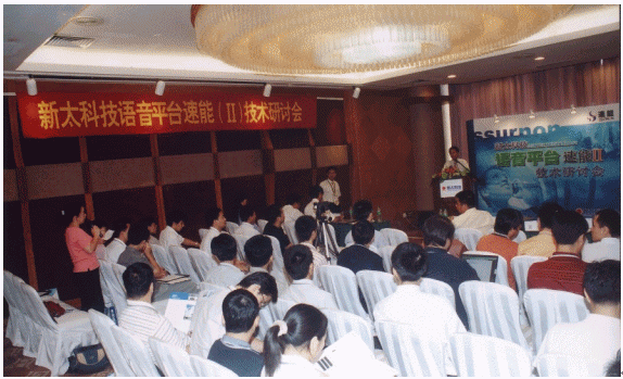 7月23日,新太科技在廣州花園酒店舉行"語音平臺速能II技術(shù)研討會"。新太科技執(zhí)行總裁梁平、副總裁何健明,開發(fā)中心副經(jīng)理張少文,營銷中心國際業(yè)務(wù)部副總經(jīng)理馬任遠、產(chǎn)品經(jīng)理黃偉,新太科技合作伙伴Intel公司通訊產(chǎn)品業(yè)務(wù)部戰(zhàn)略客戶經(jīng)理林競宇,新太語音平臺速能產(chǎn)品核心代理商--廣州納特威科技公司總經(jīng)理黃淡輝,渠道總代理商--深圳意科特實業(yè)有限公司總經(jīng)理李面換等到會并作主題發(fā)言。《中國計算機報》、《計算機世界》、《SP計算機產(chǎn)品與流通》、IT168共四家專業(yè)媒體記者到會采訪。