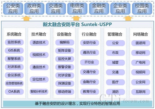 新太融合安防平臺(SUNTEK-USPP)是基于現(xiàn)代安防和融合通信技術(shù),集海量信息采集、智能分析、精準(zhǔn)處理于一體的國內(nèi)一流,國際領(lǐng)先的安防綜合應(yīng)用管理平臺。平臺采用開放的技術(shù)框架,通過對公共安全領(lǐng)域的信息管理、治安管理、安全防范和應(yīng)急指揮等進(jìn)行系統(tǒng)融合、資源共享和功能聯(lián)動,實現(xiàn)人防、物防、技防等各種資源和手段的有效整合,達(dá)到信息共享、資源調(diào)度、決策指揮的高度統(tǒng)一、靈活運轉(zhuǎn)和及時有效。