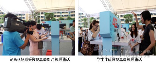 這次在廣州大學(xué)城開展的發(fā)布會(huì),吸引了很多在校大學(xué)生的參加,下圖是記者和學(xué)生現(xiàn)場(chǎng)體驗(yàn)通過(guò)悅視高清視頻通話玩即時(shí)猜拳游戲,傳輸?shù)乃挟嬅娣浅G逦鲿,悅視產(chǎn)品的優(yōu)質(zhì)體驗(yàn)讓人享受無(wú)線高質(zhì)量流媒體服務(wù)的同時(shí)深刻感受到TD-LTE高帶寬、低時(shí)延的優(yōu)勢(shì)。