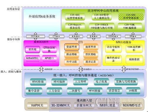 欣方呼叫中心是基于下一代融合網(wǎng)絡(luò)技術(shù)和架構(gòu)的新型呼叫中心平臺(tái),面向PSTN(固定電話網(wǎng))、PLMN(移動(dòng)電話網(wǎng))、3G窄帶視頻和NGN/IMS(軟交換)多種網(wǎng)絡(luò)接入提供多媒體聯(lián)絡(luò)中心系統(tǒng),支持話務(wù)員與客戶之間語音、視頻、傳真、消息等多種通訊方式。系統(tǒng)采用下一代網(wǎng)絡(luò)融合架構(gòu),呼叫平臺(tái)采用SIP信令方式搭建,信令與媒體分離、平臺(tái)與網(wǎng)絡(luò)無關(guān),支持多種異構(gòu)網(wǎng)絡(luò)環(huán)境接入,支持多種媒體統(tǒng)一排隊(duì)與路由。