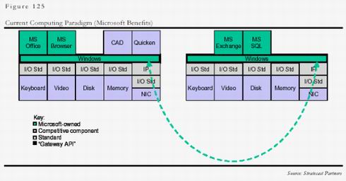 今天,由于業(yè)內(nèi)各企業(yè)普遍明白了控制價值鏈中操作平臺和應(yīng)用平臺的重要性,因此靠壟斷本身來贏利容易受到全行業(yè)的抵制,微軟的策略是在操作平臺和應(yīng)用平臺上形成壟斷后,靠應(yīng)用來贏利,這樣大大增加了贏利的隱蔽性,業(yè)界比較容易接受。