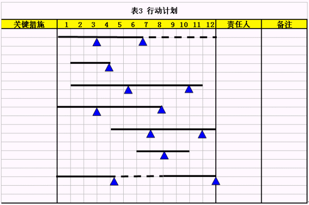有經(jīng)驗的管理者都有體會,年度規(guī)劃對于全年的工作將產(chǎn)生決定性影響,因此在設計每一個關(guān)鍵措施的時候,多想想 "問題"和"風險"是非常有好處的。表1是規(guī)劃關(guān)鍵措施的工具,將有助于我們思考的更加全面。