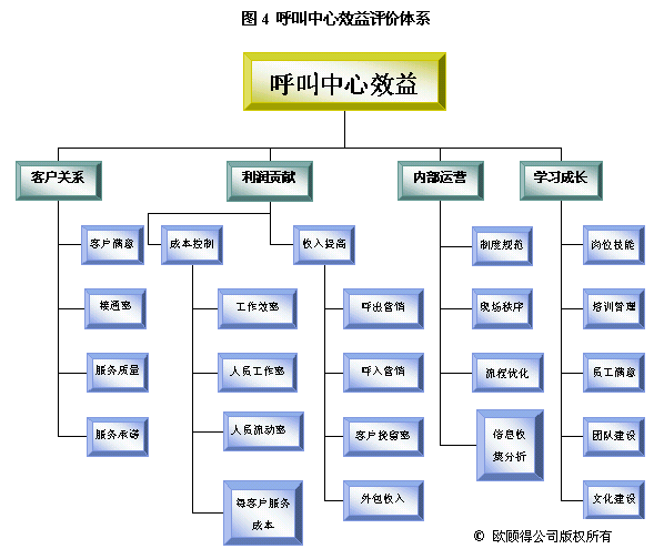 根據(jù)年度重點工作及目標,我們就可以設計關(guān)鍵措施來使其實現(xiàn)。通常一項關(guān)鍵措施可以有助于幾個目標的達成。如建立培訓體系,可以使得在崗培訓、上崗培訓、多技能訓練以及崗位技能達標率有所提升,而體現(xiàn)在業(yè)務上的效果則是服務質(zhì)量的提升、呼出營銷收入增加和客戶挽留率提高。
