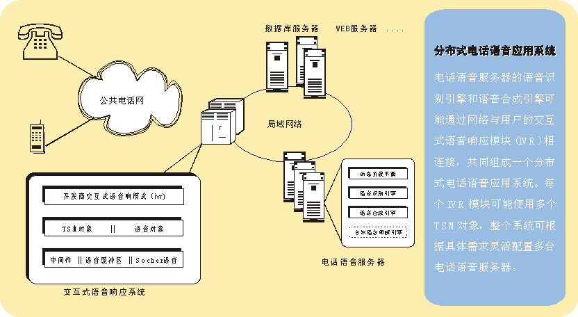 。 支持客戶服務(wù)器模式:可以將執(zhí)行傳統(tǒng)的電話語(yǔ)音流程的應(yīng)用系統(tǒng)作為客戶機(jī),使用專(zhuān)門(mén)的服務(wù)器提供語(yǔ)音識(shí)別的計(jì)算。