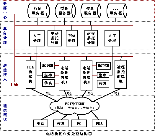 另一種方案是PDA和證券營(yíng)業(yè)部前端機(jī)(實(shí)際就是電話(huà)委托前端機(jī))采用FSK通訊方式,使用電話(huà)委托的通道來(lái)完成所有的委托查詢(xún)。這種方式的速度快,信息容量大,保密性強(qiáng),而且營(yíng)業(yè)部不需單獨(dú)申請(qǐng)電話(huà)線路,PDA和電話(huà)委托線路可動(dòng)態(tài)分配,使其電話(huà)線路得到最大限度的利用。另外,營(yíng)業(yè)部對(duì)外形象也好,只用一個(gè)號(hào)碼就可讓股民完成電話(huà)委托、PDA委托等多種委托方式,給股民帶來(lái)了方便。不過(guò)這種方式需要得到電話(huà)語(yǔ)音卡提供廠商的產(chǎn)品技術(shù)支持,語(yǔ)音卡必須同時(shí)支持標(biāo)準(zhǔn)的DTMF和FSK的方式,卡上有充足的能力來(lái)處理兩種方式,在語(yǔ)音處理卡的底層驅(qū)動(dòng)應(yīng)該將電話(huà)和PDA的委托區(qū)別開(kāi)來(lái),目前市場(chǎng)能夠完全支持這種應(yīng)用的只有深圳市東進(jìn)通訊技術(shù)股份有限公司的產(chǎn)品,東進(jìn)技術(shù)的新一代PCI系列語(yǔ)音卡數(shù)字卡和模擬卡都完全采用DSP(數(shù)字信號(hào)處理器)架構(gòu),卡上有專(zhuān)用DSP來(lái)處理DTMF和FSK的收發(fā),是目前PDA委托前端的最好選擇;這種方案還應(yīng)該得到證券電話(huà)委托系統(tǒng)的開(kāi)發(fā)商的支持,在電話(huà)委托系統(tǒng)里增加處理PDA委托的功能。目前恒基偉業(yè)的“股靈通”就是采用這種方式。