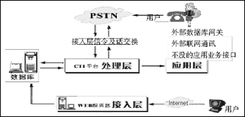 接入層主要負(fù)責(zé)公網(wǎng)(固定網(wǎng)、移動網(wǎng)、互聯(lián)網(wǎng))與系統(tǒng)相接的部分,處理電話呼入/呼出的信令、話路的交換及互聯(lián)網(wǎng)的接入、數(shù)據(jù)的處理。