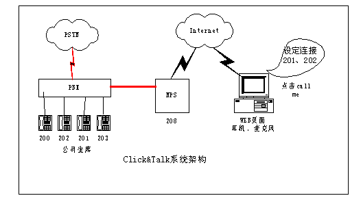舉個例子,在傳統(tǒng)的網(wǎng)上交流手段下,對于一個在線商戶來說,其客戶如果需要與而且也容易造成客戶流失。現(xiàn)在采用Click&Talk系統(tǒng)后,一個在線的商戶只要將一個Click & Talk的按鈕嵌在在線商店里。世界各地的用戶只需要通過PC,點擊在線商戶的這個按鈕,就能與商戶電話聯(lián)系,或請求在方便的時間給予回撥。通過這種通信模式,世界各地的客戶都能和您保持密切互動的聯(lián)系,而不用擔心長途電話的費用。還可以實現(xiàn)公司出差人員及分支機借助Click&Talk平臺和公司總部的通話的應用,大幅節(jié)省話費成本。