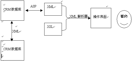 包括客戶資料,銷售報(bào)表等相關(guān)的客服信息都存儲(chǔ)在數(shù)據(jù)庫中,通過ASP應(yīng)用程序取出需要的數(shù)據(jù)生成符合條件的XML文檔,再通過安裝在服務(wù)器端的XML解析器按照預(yù)先設(shè)定的排版樣式XSL解析XML文檔,最后生成符合條件的HTML格式的CRM操作界面呈現(xiàn)在客戶面前?蛻魯(shù)據(jù)可能來自不同的數(shù)據(jù)庫,并且都有各自不同的復(fù)雜格式。但客戶與這些數(shù)據(jù)庫間只通過一種標(biāo)準(zhǔn)語言進(jìn)行交互,那就是XML。由于XML的自定義性及可擴(kuò)展性,它足以表達(dá)各種類型的數(shù)據(jù)。客戶收到數(shù)據(jù)后可以進(jìn)行處理,也可以在不同數(shù)據(jù)庫間進(jìn)行傳遞。