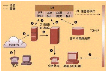CTI (Computer Telephony Integration 計(jì)算機(jī)電信集成) 技術(shù)將計(jì)算機(jī)網(wǎng)和電話(huà)網(wǎng)連接在一起,把語(yǔ)音和數(shù)據(jù)服務(wù)集成為一體,使得構(gòu)造數(shù)據(jù)和語(yǔ)音的融合應(yīng)用得以實(shí)現(xiàn)。例如,由于CTI技術(shù)的引入,當(dāng)用戶(hù)來(lái)話(huà)時(shí),呼叫中心能根據(jù)用戶(hù)的呼叫信息如ANI(主叫號(hào))結(jié)合數(shù)據(jù)庫(kù)迅速地識(shí)別用戶(hù),實(shí)現(xiàn)“彈屏”功能;當(dāng)電話(huà)轉(zhuǎn)接時(shí),實(shí)現(xiàn)語(yǔ)音數(shù)據(jù)的同步轉(zhuǎn)移;根據(jù)所獲得的客戶(hù)信息及其他相關(guān)信息將來(lái)話(huà)路由到最適合服務(wù)的座席等。CTI技術(shù)包含了數(shù)據(jù)通信與語(yǔ)音通信兩大部分的內(nèi)容,關(guān)注的不僅僅是將基于計(jì)算機(jī)的智能技術(shù)運(yùn)用到電話(huà)的發(fā)送、接收及管理,還要考慮各種媒體類(lèi)型的信息傳送,包括實(shí)時(shí)信號(hào)和非實(shí)時(shí)信號(hào),如傳真、電子郵件和視頻信號(hào)等。
