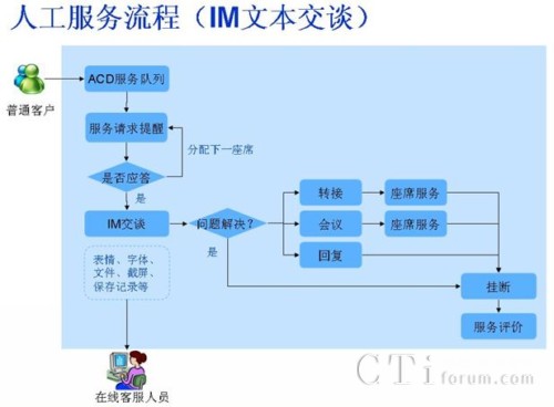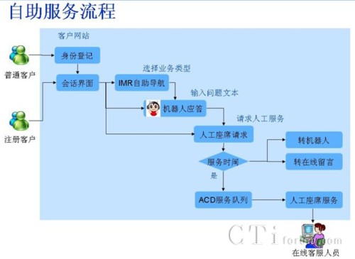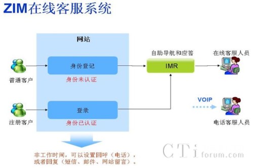 客戶從網(wǎng)站設(shè)定的多個入口訪問企業(yè)在線客服,系統(tǒng)同時進(jìn)行客戶身份認(rèn)證,客戶可以選擇訪客或注冊用戶身份訪問在線客服系統(tǒng)(如銀行的網(wǎng)銀客戶不需要客戶輸入身份直接進(jìn)入系統(tǒng)),客戶以不同的身份訪問在線客服系統(tǒng),關(guān)系到在轉(zhuǎn)人工座席時ACD的路由策略、技能組座席服務(wù)定位、客戶既往服務(wù)信息的完整和個性化服務(wù)的體現(xiàn)。