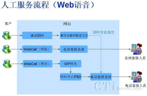 客戶通過Web方式發(fā)起呼叫,與人工座席進(jìn)行語音交流。