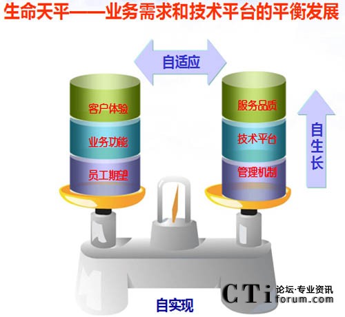 “生命天平”所體現(xiàn)的聯(lián)絡(luò)中心運營管理是一個動態(tài)持續(xù)的過程,客戶體驗、業(yè)務(wù)功能和員工期望是不斷變化的,這就要求平臺要具有生命力,要不斷滿足客戶和業(yè)務(wù)新的需求,能夠主動的根據(jù)客戶體驗提升服務(wù)品質(zhì),跟隨業(yè)務(wù)功能變化提升技術(shù)平臺,結(jié)合員工期望,完善和改進管理機制。使聯(lián)絡(luò)中心始終處于自生長、自適應(yīng)、自實現(xiàn)的平衡調(diào)節(jié)過程中。