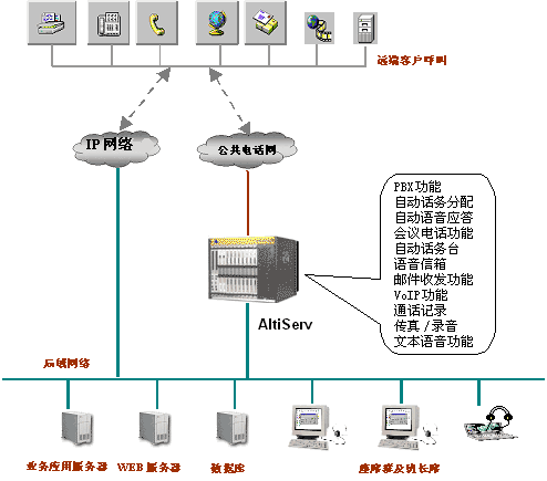 - 電話系統(tǒng)與傳統(tǒng)的交換機(jī)連為一個(gè)統(tǒng)一的通訊整體