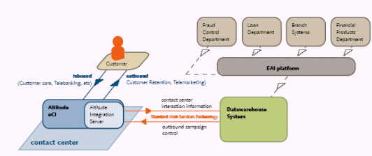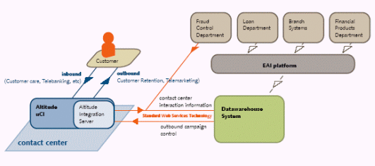 在線銀行要求Altitude Software推薦一個適合的和集成的解決方案。替代建議昂貴的EAI(企業(yè)應用集成)平臺,Altitude推薦使用標準的網(wǎng)絡服務技術,與Altitude uCI產(chǎn)品完全兼容。