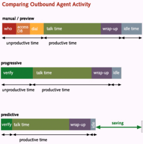 預(yù)測撥號 是一種用來在一個短的時段中對大量客戶進(jìn)行聯(lián)絡(luò)的一種先進(jìn)的步進(jìn)模式。使用預(yù)測撥號,坐席代表僅僅處理成功的呼叫。預(yù)測撥號實(shí)現(xiàn)了最高水平的效率。預(yù)測撥號使用精密復(fù)雜的技術(shù)預(yù)測沒有被應(yīng)答的呼叫的一個百分比和什么時候坐席代表將完成正在進(jìn)行著的呼叫。預(yù)測撥號將自動撥電話號碼并對其中一些呼叫會失敗做好了準(zhǔn)備。使用預(yù)測撥號,坐席代表每小時的通話時間大約在40到45分鐘。