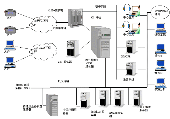 - 可以做到硬件無(wú)關(guān),即不管硬件(包括交換機(jī))怎么變化,CallCenter核心平臺(tái) 軟件系統(tǒng)不變,業(yè)務(wù)系統(tǒng)不變,從而保護(hù)投資。