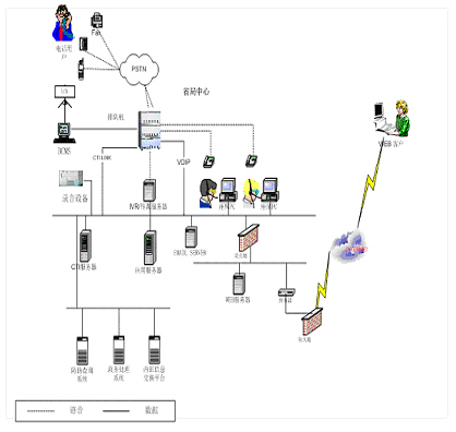 2 ) CTI(計算機(jī)電話集成)服務(wù)器:通過該平臺實現(xiàn)計算機(jī)網(wǎng)絡(luò)與電話系統(tǒng)的無縫結(jié)合,可通過計算機(jī)應(yīng)用系統(tǒng)對話務(wù)處理進(jìn)行操作;