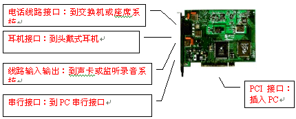 座席卡為呼叫中心座席終端卡,插入計算機PCI槽。一端與交換機、排隊機、座席系統(tǒng)用戶接口連接,另一端與耳機向連,以提供座席語音服務(wù);座席卡還提供語音輸入輸出端口配合聲卡實現(xiàn)語音錄放;計算機通過串行口實現(xiàn)對座席卡的控制。