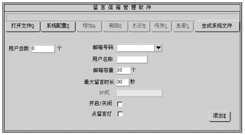 4). 主人密碼:信箱主人訪問(wèn)自己信箱的口令。主人可以通過(guò)訪問(wèn)自已的信箱修改密碼,若主人忘記密碼可通過(guò)管理員將其設(shè)置為缺省值0000。