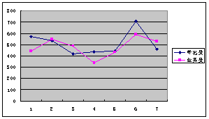 圖2是呼出員與業(yè)務(wù)員的定單數(shù)對(duì)比圖。