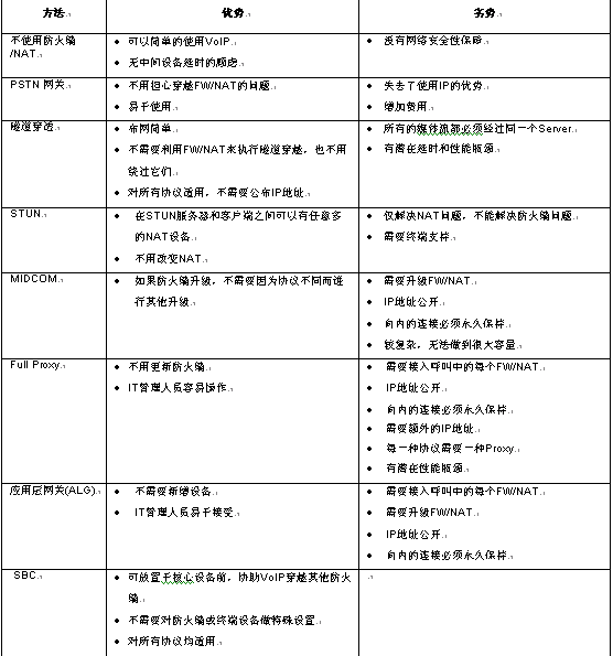 4 各種語音穿越防火墻技術的優(yōu)劣比較