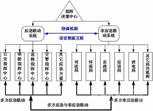 所謂“應(yīng)急與非應(yīng)急一體化聯(lián)動(dòng)”,就是在應(yīng)急聯(lián)動(dòng)和非應(yīng)急聯(lián)動(dòng)的基礎(chǔ)上,通過先進(jìn)的技術(shù)手段實(shí)現(xiàn)應(yīng)急聯(lián)動(dòng)系統(tǒng)與非應(yīng)急聯(lián)動(dòng)系統(tǒng)的高度整合,無縫聯(lián)接,并通過相應(yīng)的協(xié)調(diào)機(jī)制,實(shí)現(xiàn)各種應(yīng)急處置力量和非應(yīng)急處理部門的一體化的協(xié)同與聯(lián)動(dòng),以共同應(yīng)對(duì)和協(xié)調(diào)解決各種尤其是涉及多個(gè)方面的緊急或非緊急的事件和問題。