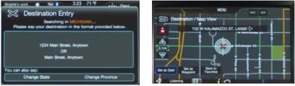 - 導(dǎo)航輸入可以使用一次性指令,例如用“迪爾伯爾尼市美利堅(jiān)路1號(hào)”指令代替的城市、街道和門牌號(hào)的逐級(jí)詞條輸入。