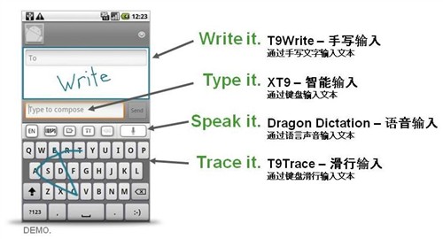 楊先生:Nuance T9 Trace解決了觸屏手機輸入文字的用戶體驗,適應各種使用環(huán)境。另外,T9 Trace作為 XT9的插件,借助XT9的強大引擎提供周邊鍵盤自動的糾錯功能,它可以會根據(jù)按鍵組合智能猜測您所需要輸入的文字。我們可以看到國內(nèi)好多手機的屏幕都非常小,2000元級別的手機屏幕大概是2.8英寸甚至2.5英寸,如果你要點命中的機會率更低了。所以滑行上來講可以某程度上解決這方面的問題。所以我們覺得這個滑行輸入法很有潛能的,特別是在中低端的Android平臺機型上。