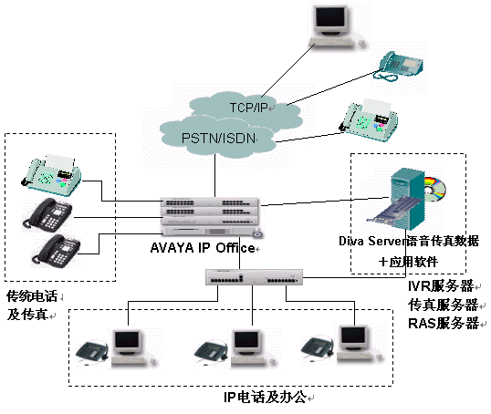 Avaya IP Office 是語音/數(shù)據(jù)融合的平臺(tái),可實(shí)現(xiàn)對(duì)普通電話和傳真的數(shù)字化及VOIP轉(zhuǎn)換。IP Office的性能配置適用于端對(duì)端IP網(wǎng)絡(luò),也可在電路交換網(wǎng)絡(luò)中發(fā)揮作用,它提供了豐富的語音功能、強(qiáng)大的數(shù)據(jù)處理能力、呼叫分配功能以及除IP之外與T1、E1、模擬線路等的連接功能。IP