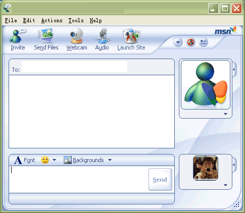 從聊天界面來看,兩者的類似更多。MSN Messenger 6.0在聊天界面比以前有了大幅改變,增加了聊天的兩者的頭像,并且可以方便的對自己的頭像進行修改。同時還可以輕松的修改聊天界面的背景。同時可以通過上面的圖標按鈕邀請他人參與,發(fā)送文件,視頻聊天等。QQ