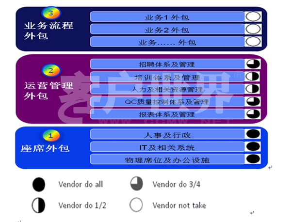以下內(nèi)容,可供大家在進(jìn)行外包業(yè)務(wù)過程中參考,來靈活選擇和確定雙方各自的外包業(yè)務(wù)內(nèi)容。