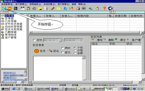 如果沒有上述兩個畫面,則應雙擊桌面的前臺和后臺圖標,用以啟動該程序,也可以選擇"開始" --》廣播短信平臺--》前臺(后臺)實現(xiàn)啟動。