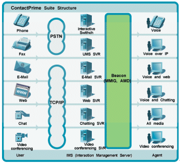 ContactPrime Beacon的集大成于一身的路由解決方案提供了在一點之上控制所有形式交互的功能。從電話到因特網(wǎng),ContactPrime Beacon可以控制基于不同類型媒介的所有用戶呼叫。它使得CSR可以通過統(tǒng)一的用戶界面處理用戶的多媒體請求。