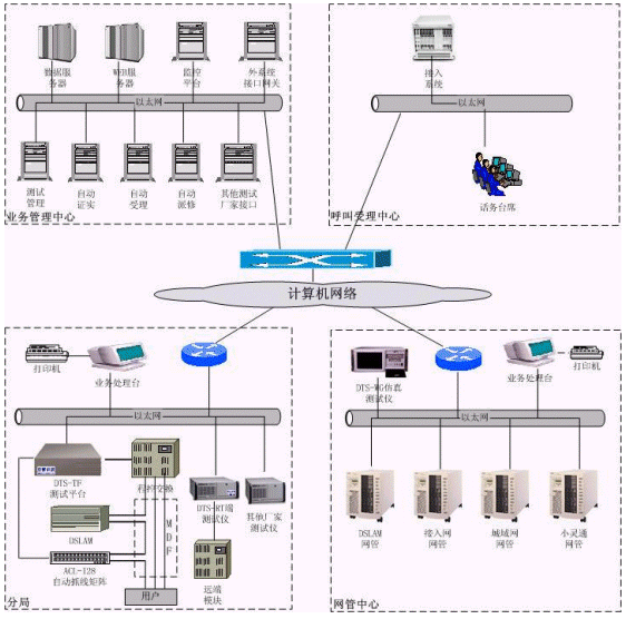 ·DTS-TF大容量測試平臺實現(xiàn)對多種不同交換機(jī)類型的外部測試及模塊局仿真測試;DTS-ADSL測試儀,實現(xiàn)ADSL開通之前的線路評估測試、ADSL開通之后的日常例行測試和ADSL故障立即測試;DTS-WG仿真測試儀,通過網(wǎng)管協(xié)議實現(xiàn)對接入網(wǎng)、LAN城域網(wǎng)、PHS小靈通等設(shè)備的故障定位;ACL-128自動抓線矩陣,提供128端口的自動抓線,級聯(lián)可達(dá)32,768條線路。