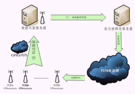 1X數(shù)據(jù)網(wǎng)絡(luò)的遠端模塊,用來傳輸設(shè)備的運行參數(shù),這種設(shè)備數(shù)量多至上萬個。由于GPRS或CDMA1X實時在線傳輸費用過于昂貴,因此設(shè)備數(shù)據(jù)采集需要每天定時有喚醒激活機制。采用軟交換的群發(fā)呼叫功能,可以定時大容量地呼叫GPRS或CDMA1X所在位置各手機號碼,以產(chǎn)生的鈴流來觸發(fā)遠程設(shè)備啟動GPRS或CDMA1X并傳輸數(shù)據(jù),確保遠程設(shè)備的正常運作。