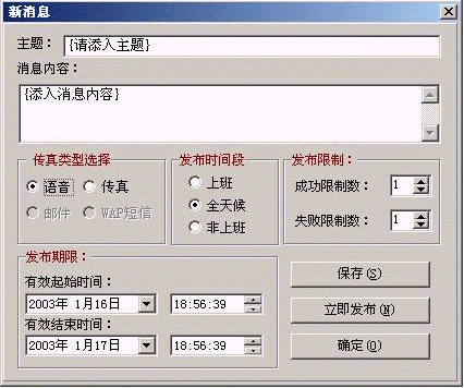 支持文本到電話語音/傳真、手機(jī)短信消息發(fā)布