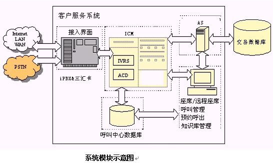 杭州恒生公司的企業(yè)級證券客戶服務中心,是一個集語音技術(shù)、通信技術(shù)、計算機網(wǎng)絡、數(shù)據(jù)庫技術(shù)于一體,支持電話、傳真、電子郵件、Web等多種媒體接入方式的呼叫響應中心。它采用先進的VOIP技術(shù),是一個基于分布式對象,與業(yè)務無關(guān)的客戶服務中心通用平臺。充分考慮現(xiàn)代證券客戶服務中心所應具備的特點,以及現(xiàn)代券商的運作模式。是杭州恒生公司多年的基于板卡式客戶服務中心的工作經(jīng)驗積累基礎上,采用先進的接入設備,而推出的新一代客戶服務中心。