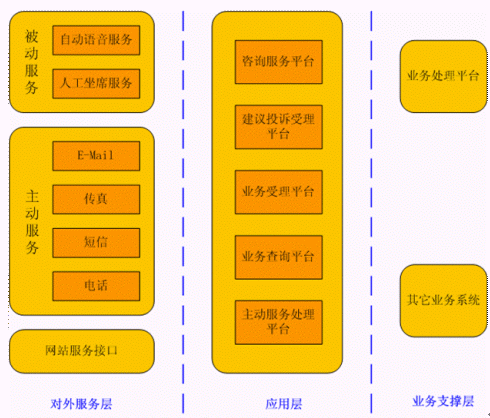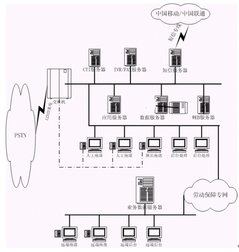 該系統(tǒng)提供5*8小時人工服務和7*24小時自動服務,提供政策法規(guī)咨詢、辦事指南、信息查詢、受理投訴舉報、進行社會調查五大功能;預留電話職介和受理勞動保障相關電話業(yè)務兩大功能,同時提供輔助功能,包括:資料庫建設,信息定制與發(fā)布,內部管理等。