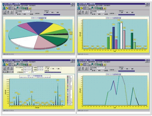 - 提供日期、月份、年度之分析統(tǒng)計(jì)圖表,且該分析統(tǒng)計(jì)圖 表還可針對金額、秒數(shù)、通數(shù)之條件列示各種統(tǒng)計(jì)分析圖表。