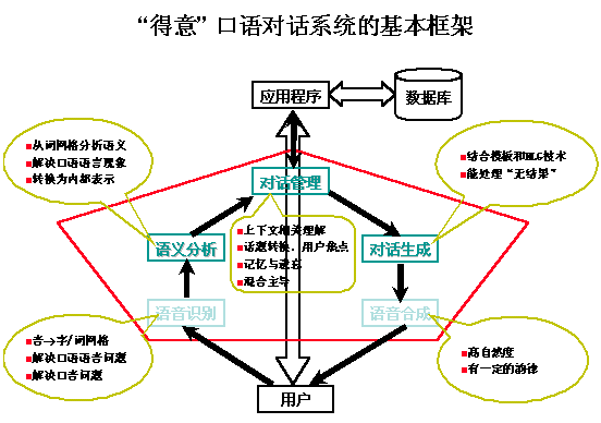 與其他中文自然語言理解系統(tǒng)不同,得意的系統(tǒng)支持的是靈活隨意的口語對話,并能根據(jù)對語義的真正理解,采用先進(jìn)的自然語言生成技術(shù),產(chǎn)生自然的應(yīng)答語句。一個口語對話系統(tǒng)包括的主要部分有:語義分析器、對話管理器、應(yīng)答生成器等。得意公司在這幾個方面都做得很好,軟件開發(fā)工具包和開發(fā)環(huán)境完備,對技術(shù)開發(fā)人員要求不高,利用該開發(fā)工具,可以大大縮短開發(fā)周期,快速并有效地開發(fā)出實用的口語對話系統(tǒng)。國內(nèi)大部分的技術(shù)開發(fā)商和SP都能輕松應(yīng)用此開發(fā)工具開發(fā)自己的智能服務(wù)系統(tǒng),有關(guān)的修改、補(bǔ)充和維護(hù)工作也很方便,一般通過修改配置文件就可以達(dá)到對系統(tǒng)進(jìn)行升級的目的。