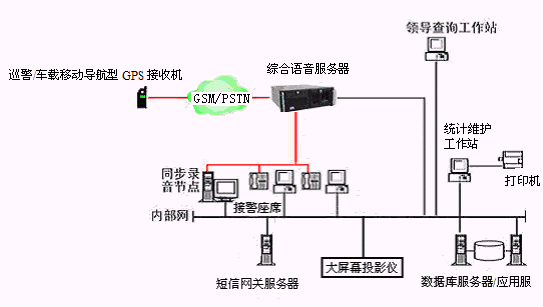 博宇科技110無線報(bào)警定位調(diào)度系統(tǒng)指揮調(diào)度中心的物理結(jié)構(gòu)由帶語音板卡的高性能工控機(jī)、CTI服務(wù)器、接警座席、統(tǒng)計(jì)維護(hù)管理工作站、數(shù)據(jù)庫服務(wù)器/應(yīng)用服務(wù)器、短消息網(wǎng)關(guān)服務(wù)器、同步數(shù)字錄音工作站、網(wǎng)絡(luò)系統(tǒng)和大屏幕投影儀等以及所開發(fā)的有關(guān)應(yīng)用軟件構(gòu)成。