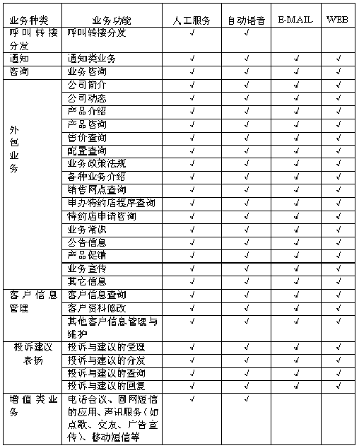 F、通知類業(yè)務(wù):對某些特定的對象通過自動呼出或人工呼出進(jìn)行通知,實現(xiàn)政策法規(guī)、專題的通知,方式可以是電話、傳真、eMail、短消息、網(wǎng)站等;