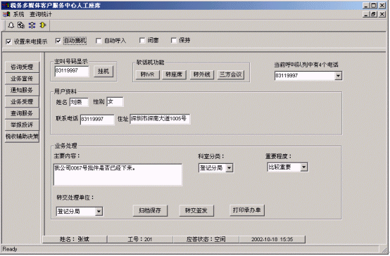 ·系統(tǒng)提供計(jì)算機(jī)語音板卡和排隊(duì)交換機(jī)兩種語音接入方案